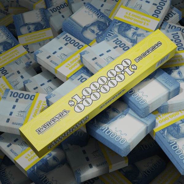 20 Bandas con denominación de $1.000.000. Ideal para envolver y ordenar tus fajos de billetes de $5.000, $10.000 y $20.000 dando un total de $1.000.000